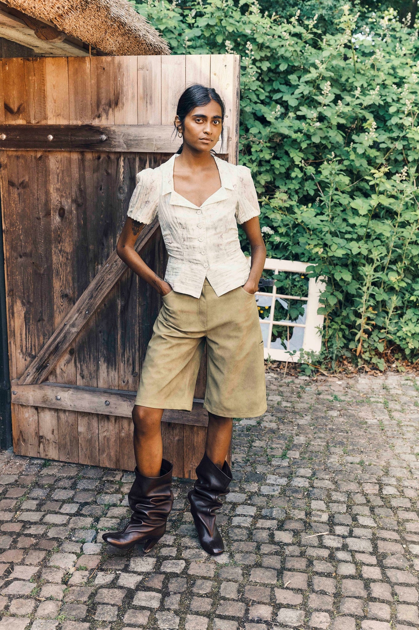 Textured short sleeve blouse by Baum Und Pferdgarten.