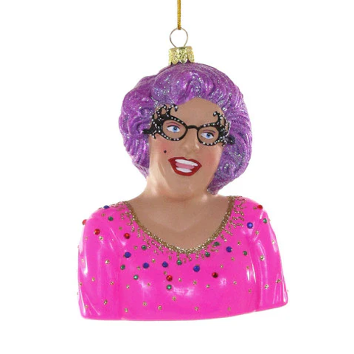 Dressed to impress in a hot pink gown with jeweled details, she’s ready to steal the spotlight in your holiday decor. Whether you're a longtime fan or just love quirky ornaments, Dame Edna is the life of the Christmas party—possums included!