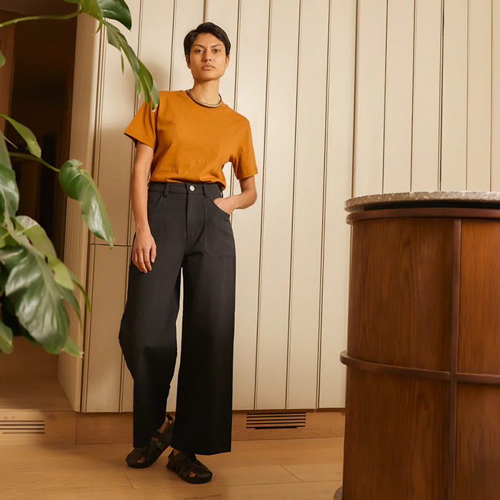 Slightly cropped, trousers have a slight flare when worn.