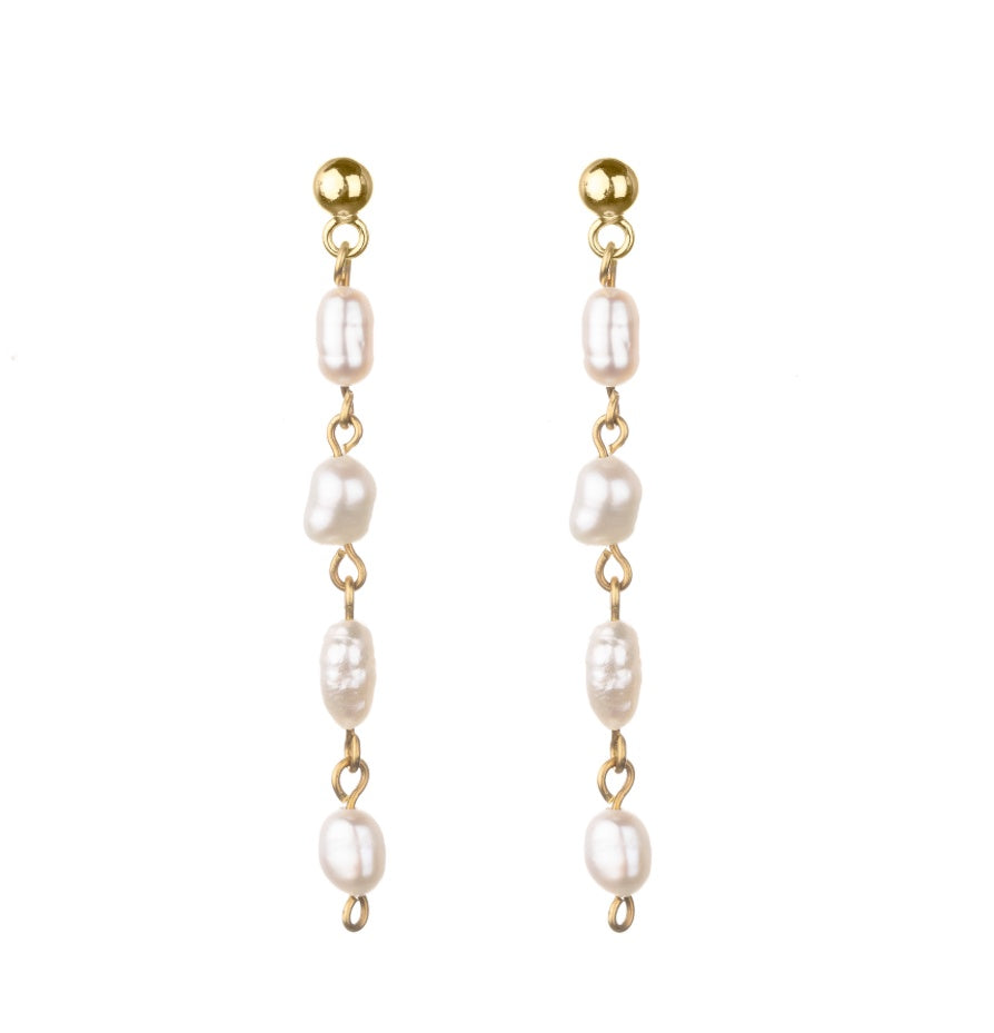 Materials: Brass, freshwater pearls and gold plated earring posts and butterflies.