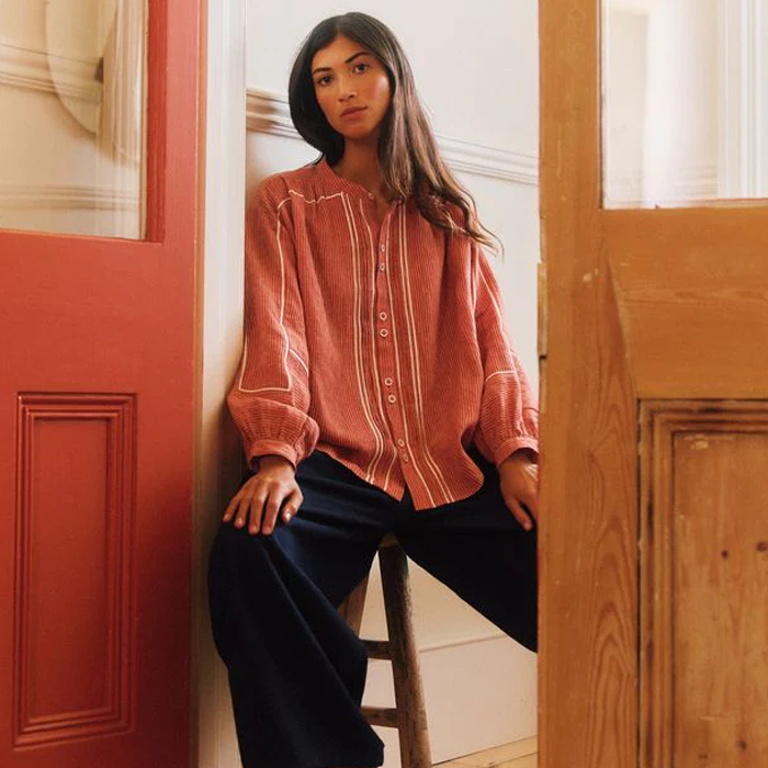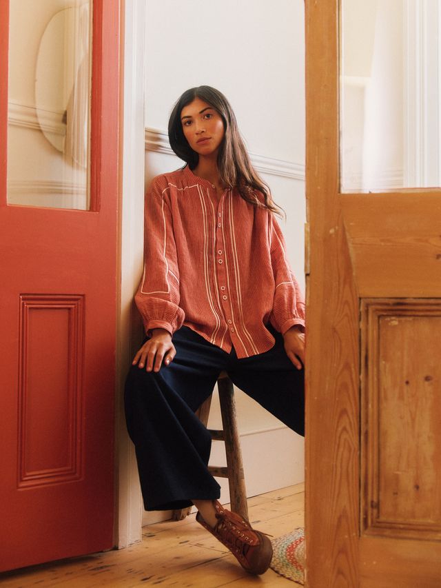 Regular fit with softly gathered yoke and bespoke embroidery.