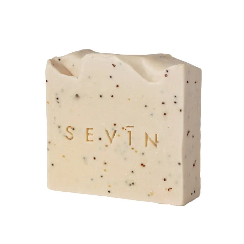 Full 120g sized bar of natural Coral Clay Scrub soap by Sevin.