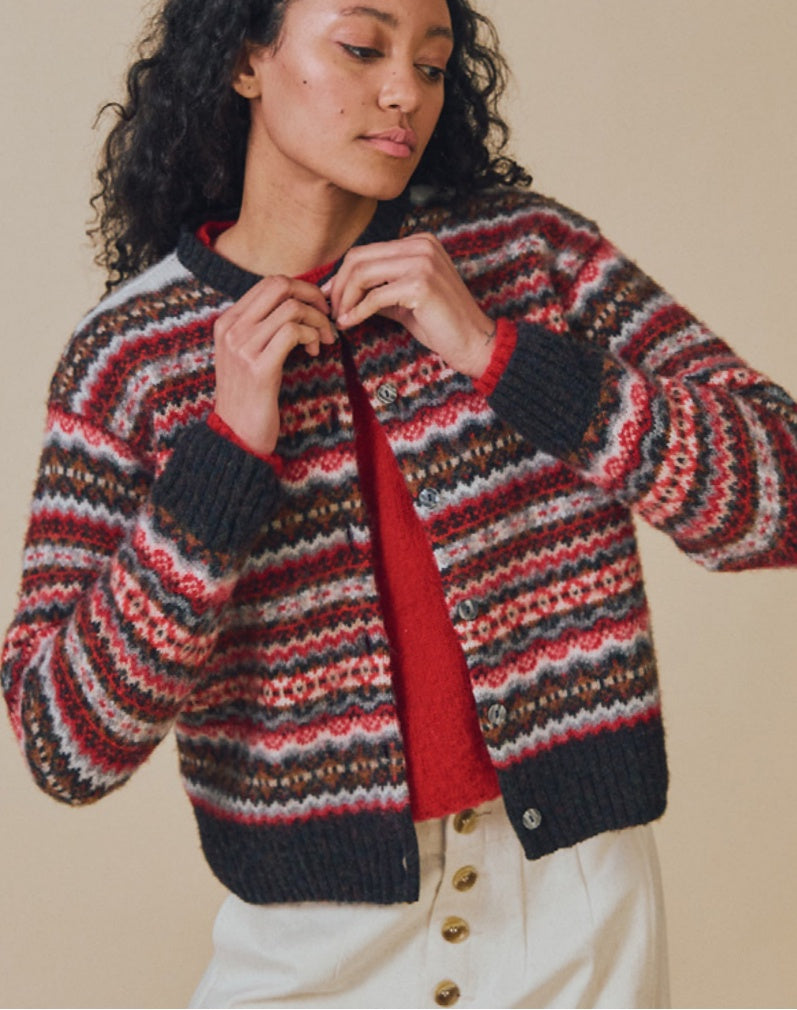Pure wool fair isle cardigan by Lewes based Sideline.